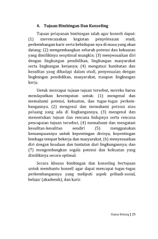 Tujuan pelayanan bimbingan ialah agar konseli dapat: