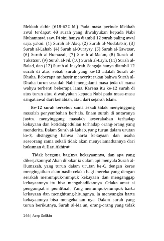 Balad, dan (12) Surah al-Insyirah. Sengaja hanya diambil 12