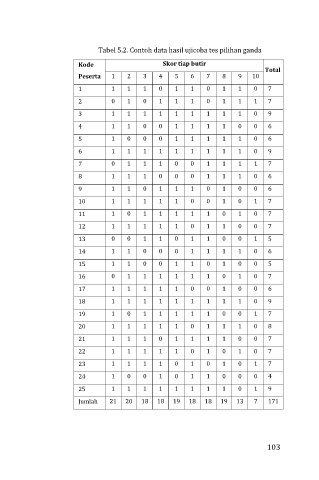 Tabel 5.2. Contoh data hasil ujicoba tes pilihan ganda