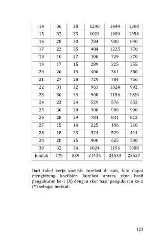 Dari tabel kerja analisis korelasi di atas, kita dapat