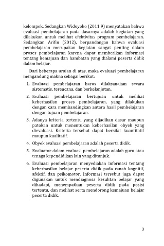 4. Obyek evaluasi pembelajaran adalah peserta didik.