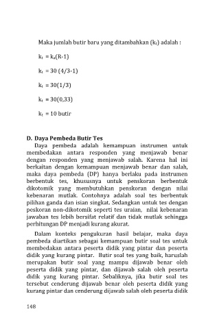 maka daya pembeda (DP) hanya berlaku pada instrumen