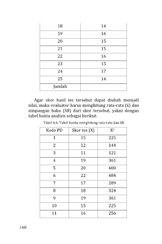 Tabel 6.6. Tabel bantu menghitung rata-rata dan SB