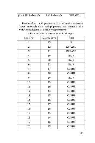Tabel 6.10. Contoh nilai tes Matematika 3 kategori