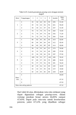 Tabel 6.15. Contoh penentuan passing-score dengan metode