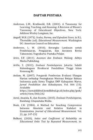 Arifin, Z. (2012). Evaluasi Pembelajaran. Jakarta: Subdit
