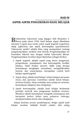 menjadi 3 aspek atau ranah, yakni aspek kognitif (cognitive),