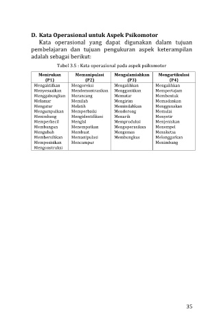 Tabel 3.5 : Kata operasional pada aspek psikomotor