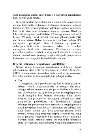 dan 5 soal utaian. Dalam konteks ini, tes hasil belajar IPS