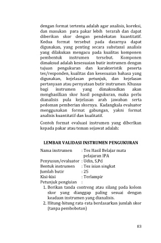 Contoh format evaluasi instrumen yang diberikan