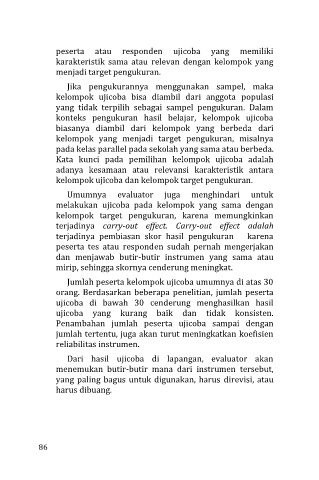 konteks pengukuran hasil belajar, kelompok ujicoba