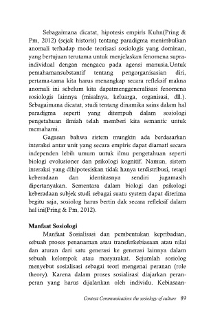 Context Communication: the sosiology of culture 89