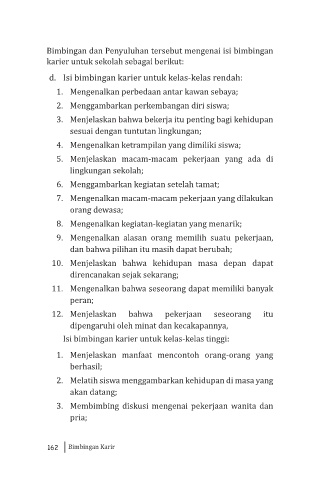 d. Isi bimbingan karier untuk kelas-kelas rendah: