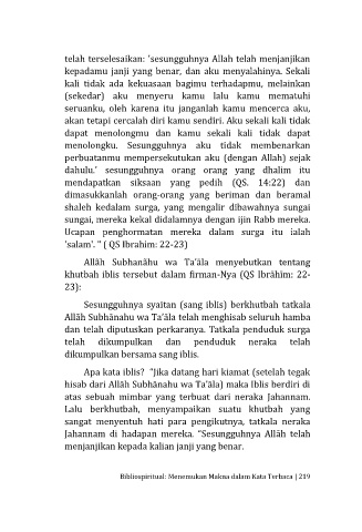 khutbah iblis tersebut dalam firman-Nya (QS Ibrāhīm: 22-