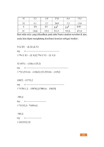 maka kita dapat menghitung koefisien korelasi sebagai berikut :