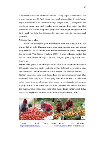tomat kemudian disortir berdasarkan warna, ukuran, dan mutunya (Gambar 22).