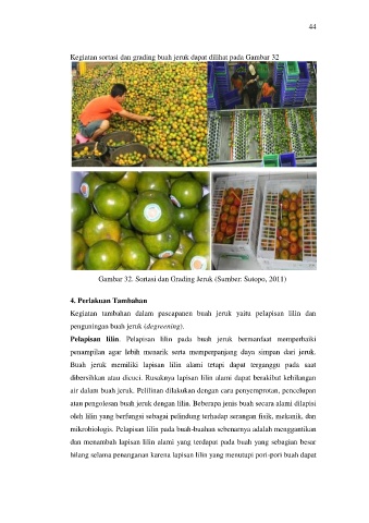 Kegiatan tambahan dalam pascapanen buah jeruk yaitu pelapisan lilin dan