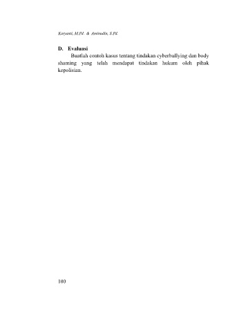 Karyanti, M.Pd. & Aminudin, S.Pd. D. Evaluasi Buatlah contoh kasus tentang tindakan cyberbullying dan body shaming yang telah mendapat tindakan hukum oleh pihak kepolisian. 100