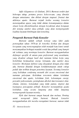 akhirnya apatis. Burnout terjadi ketika seorang konselor