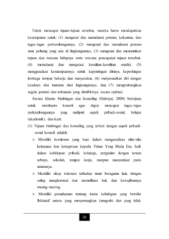 tugas-tugas perkembangannya, (2) mengenal dan memahami potensi