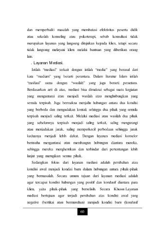 keduanya menjadi lebih dekat. Dengan layanan mediasi konselor